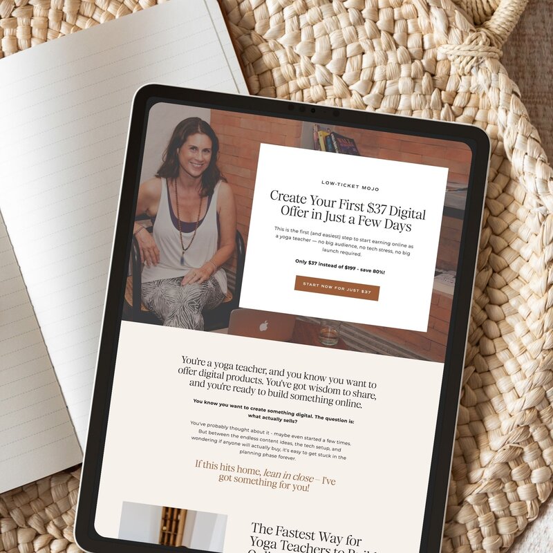 Create your first $37 digital offer in just a few days. This is the first (and easiest) step to start earning online as a yoga teacher — no big audience, no tech stress, no big launch required.