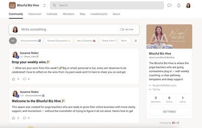 My goal is to grow my online live studio with public classes, private sessions and group courses and I joined the Blissful Biz Hive to get a break down of all the steps I needed to take and to gain confidence. I especially liked that I could go at my own pace.”