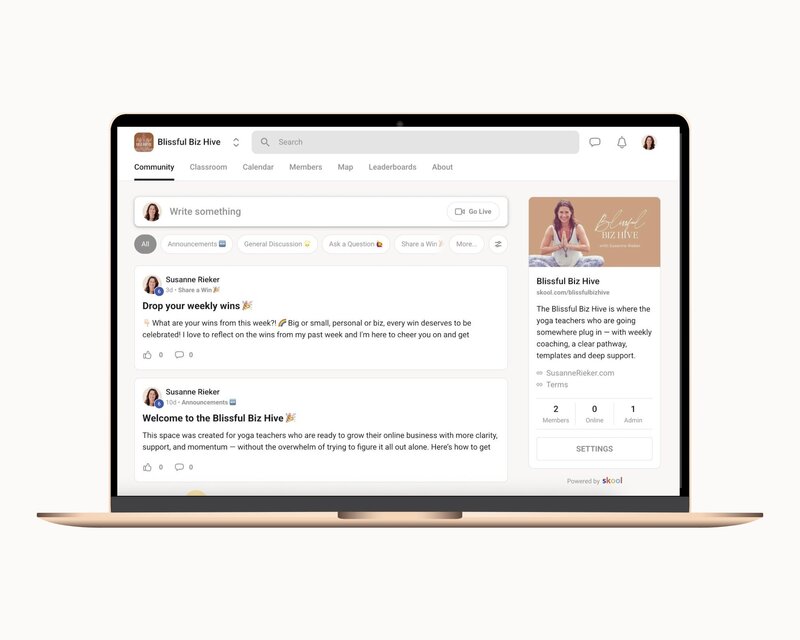 Inside the Blissful Biz Hive, you’ll join a community that’s growing right alongside you. We’re building this space together — a supportive circle of yoga teachers who are refining, launching, and expanding their online businesses with intention.